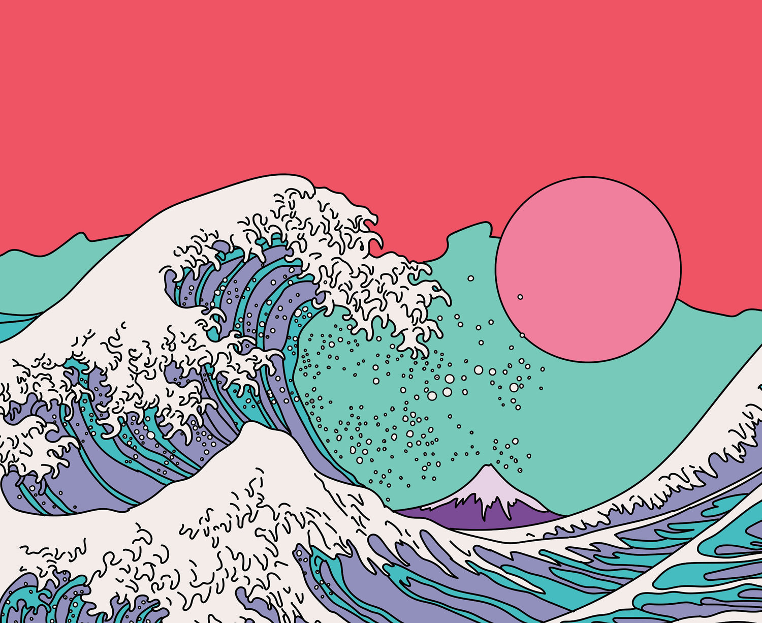 Ocean Waves & Cherry Blossoms Button Up Shirt