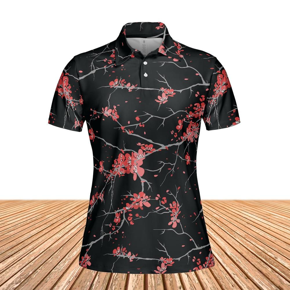 Cherry Blossoms Black Polo Shirt