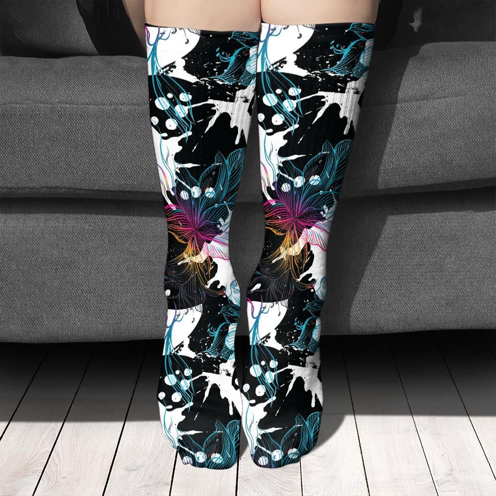 Keep your feet warm and comfortable with these Abstract Gradient Flowers Socks! You can match our socks with some of our other apparel clothing and make it the perfect complement to your outfit. Rather you want to match or simply want an accent piece to stand out and grab attention these are the perfect socks for you!