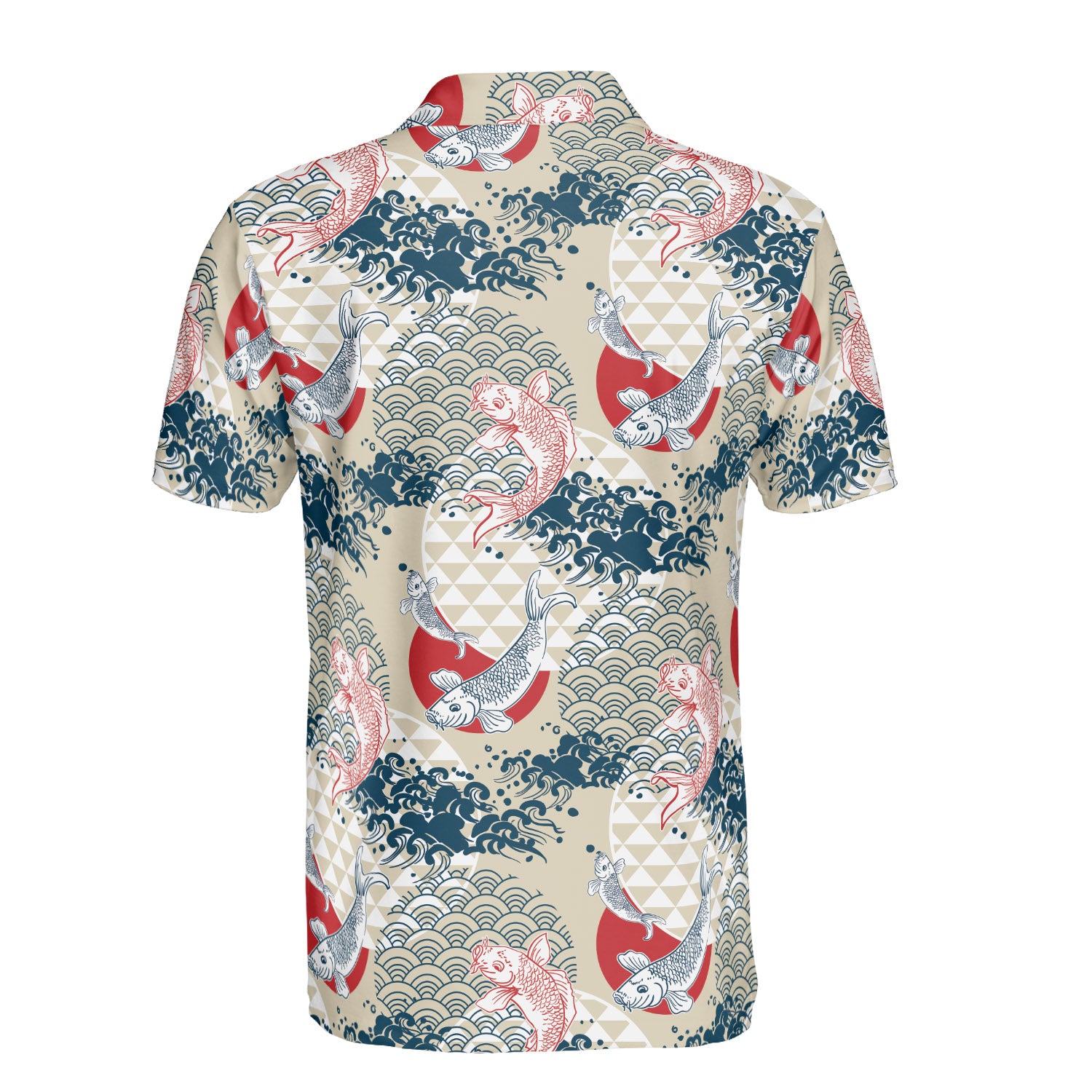 Cream Koi Fish & Asian Waves Polo Shirt