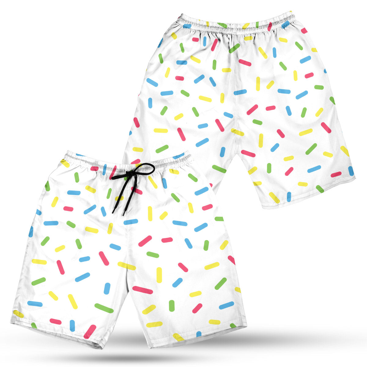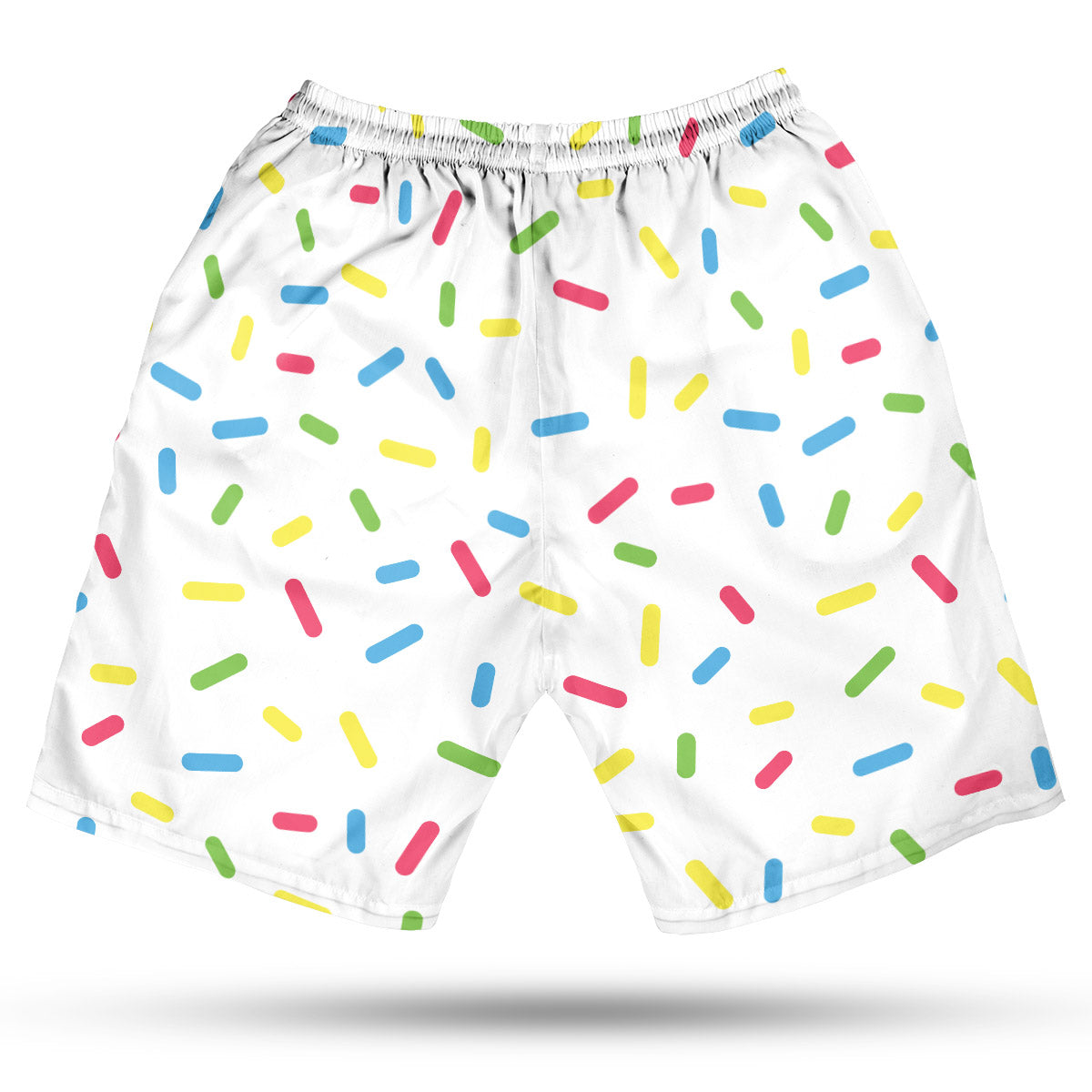 Bring in summer and complete your outfit with these awesome and comfortable Ice Cream Sprinkles Shorts. Features a design consisting of vanilla ice with multicolored sprinkles all over the shorts. Pairs perfectly with our ice cream cone polo shirt and our other ice cream cone garments. These shorts are sure to feel good and grab attention when you wear them.
