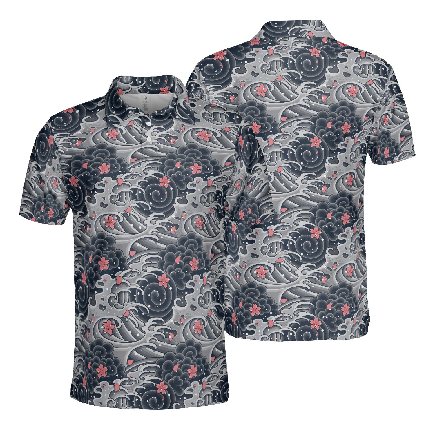 Japanese Waves & Cherry Leaves Polo Shirt